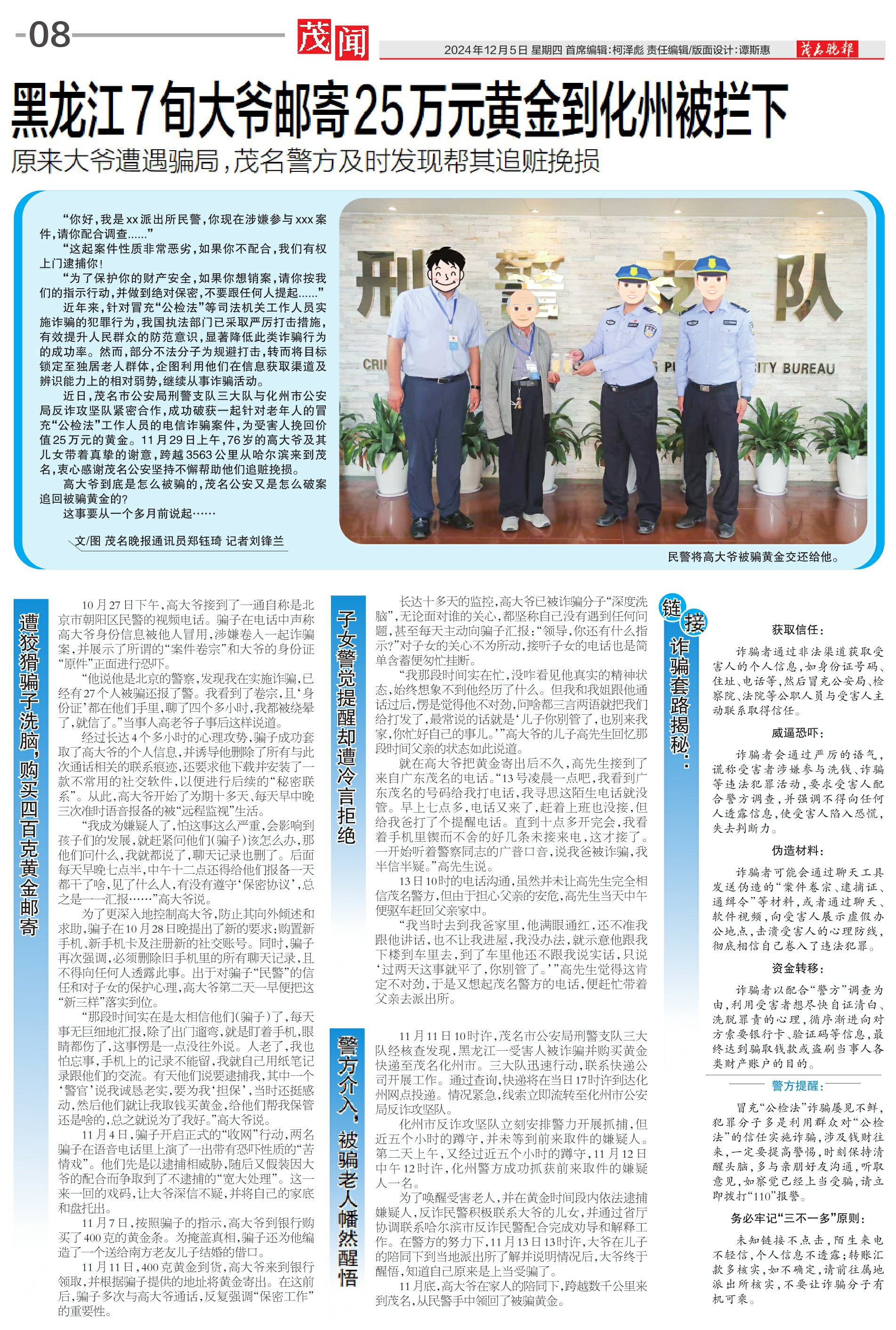 黑龙江7旬大爷邮寄25万元黄金到化州被拦下