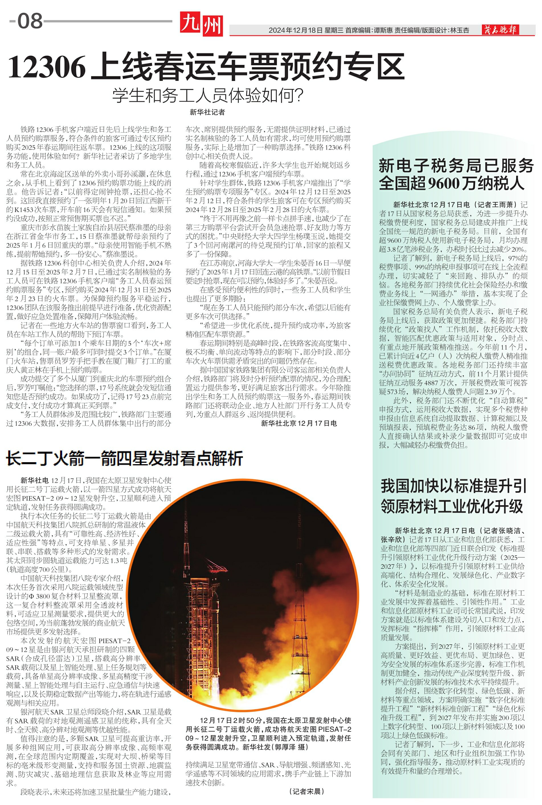 段晓表示,未来还将加速卫星批量生产能力建设,持续满足卫星宽带通信、SAR、导航增强、频谱感知、光学遥感等不同领域的应用需求,携手产业链上下游加速技术创新。(记者 宋晨)
