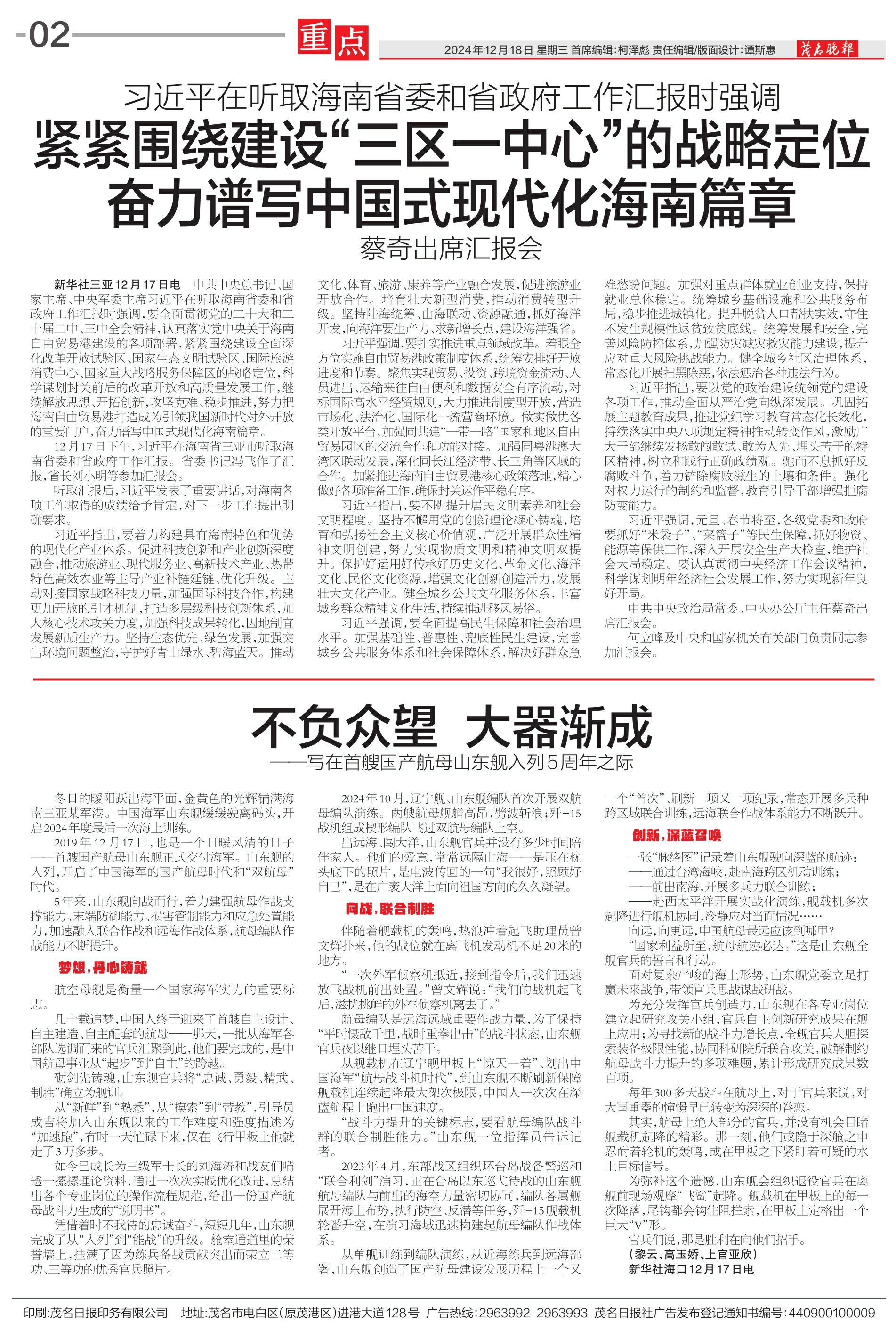 紧紧围绕建设“三区一中心”的战略定位 奋力谱写中国式现代化海南篇章