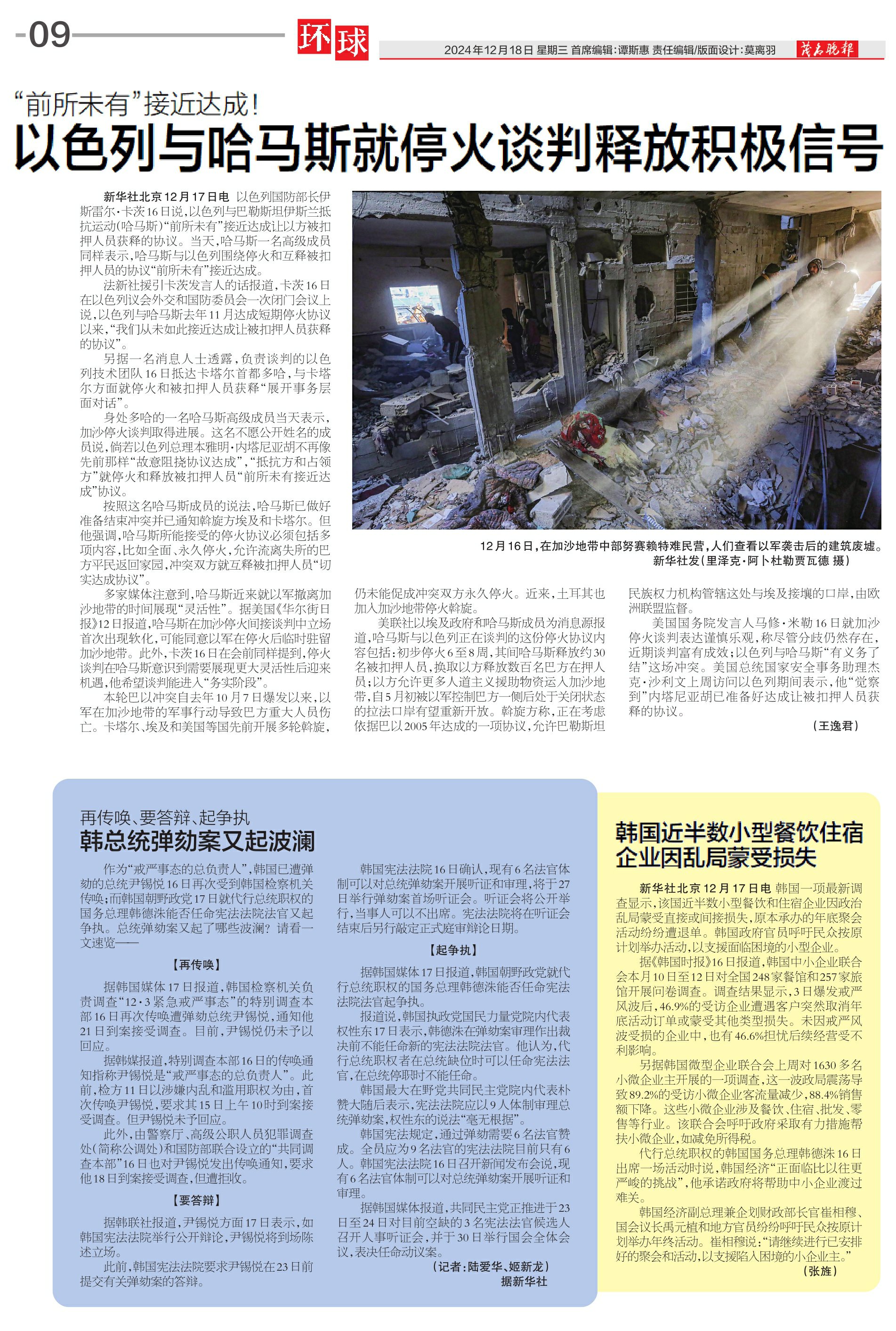 以色列与哈马斯就停火谈判释放积极信号