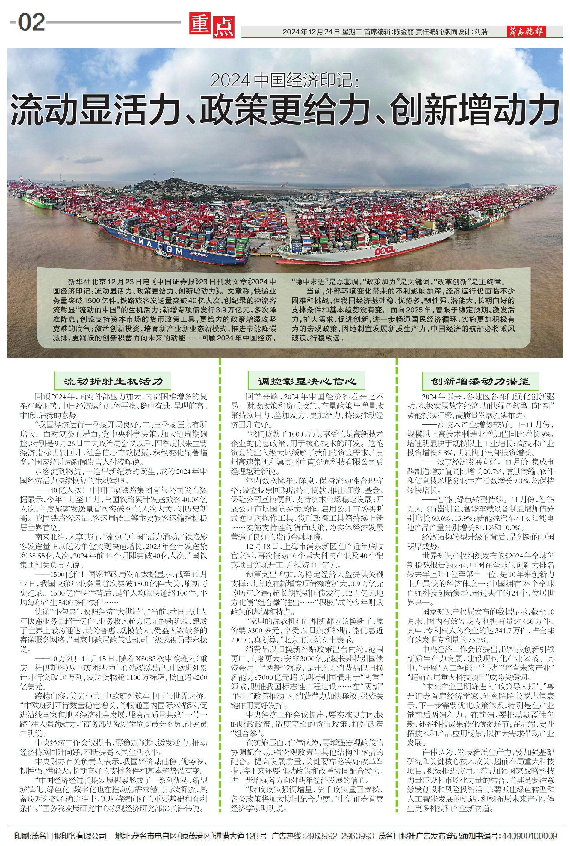 2024中国经济印记:流动显活力、政策更给力、创新增动力