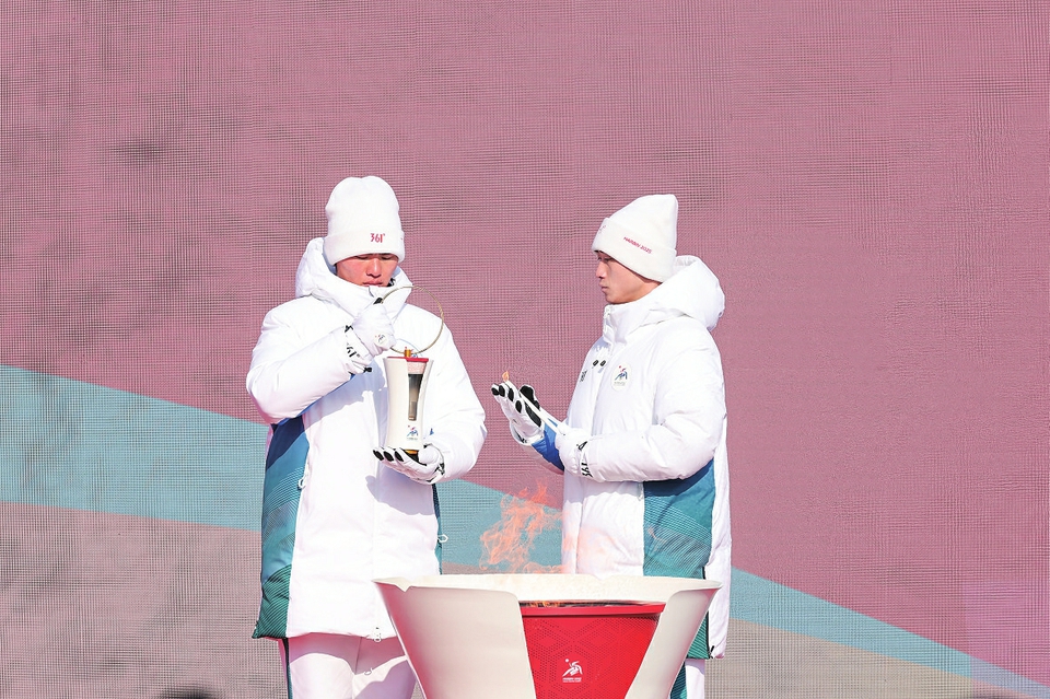 ▲这是2月3日拍摄的第九届亚冬会火炬传递收火仪式现场。新华社记者 张涛 摄
