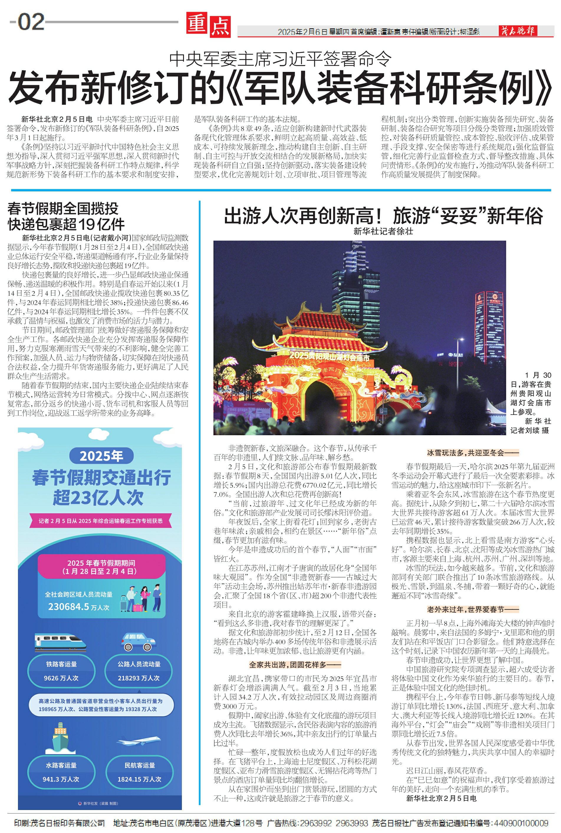 2025年春节假期交通出行超23亿人次