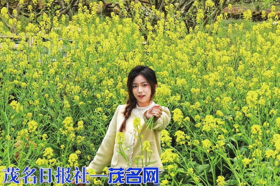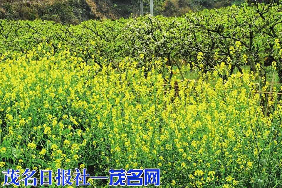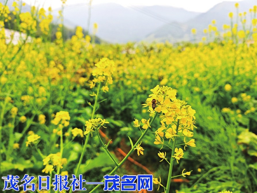 信宜钱排芥菜花开,田野披金装引游人。茂名晚报通讯员
