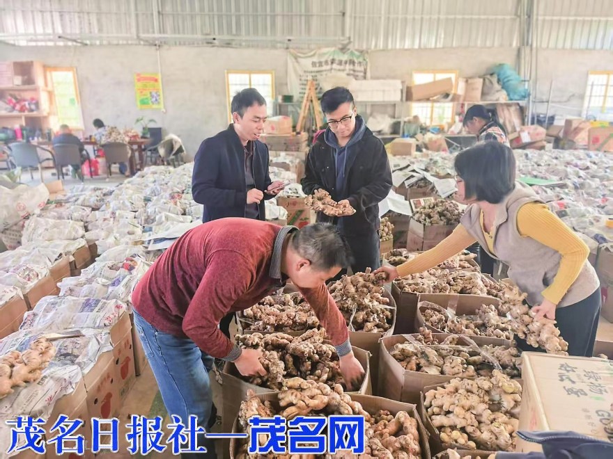 驻镇工作队到深丰源电商服务站了解大肉姜收购情况。