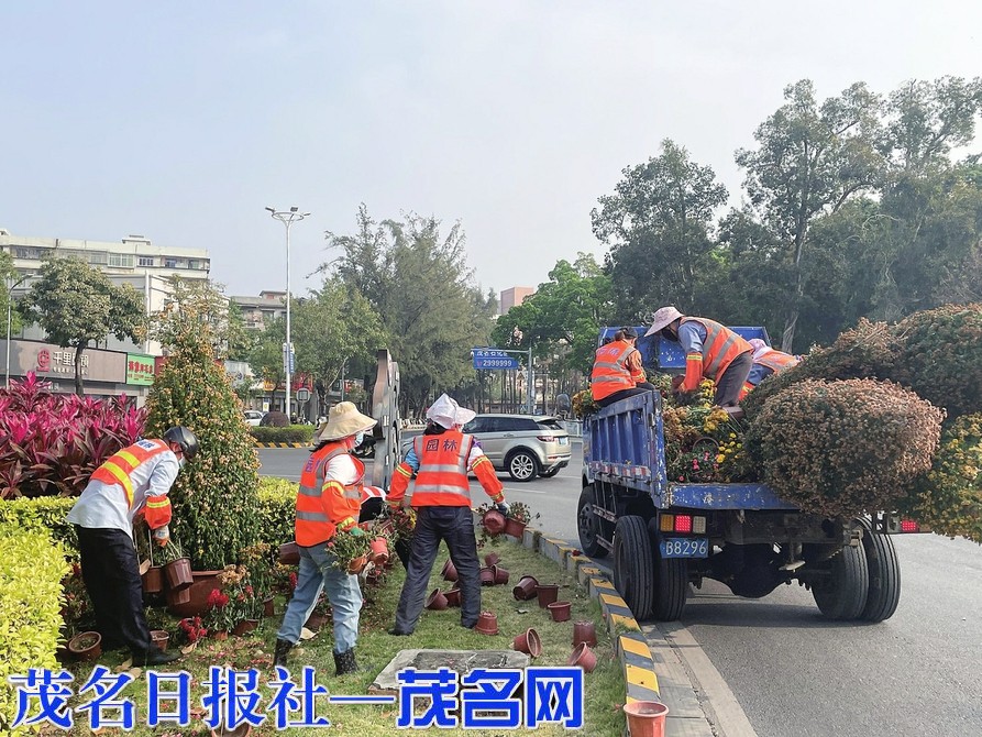 2月17日,园林工人开始回收市区迎春景点布展年花,进行分类处理,循环利用。茂名日报社全媒体记者