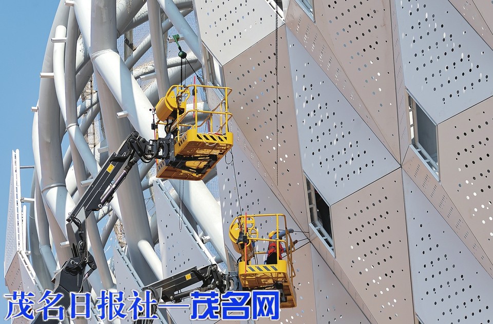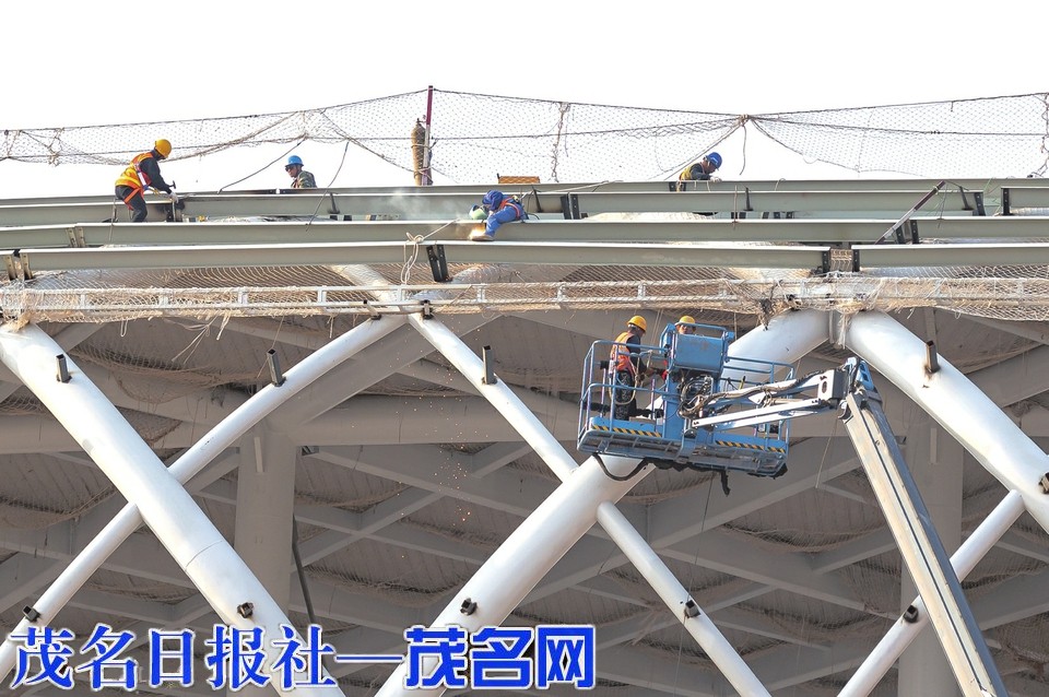 工人加紧施工。茂名日报社全媒体记者 周泽佳 摄