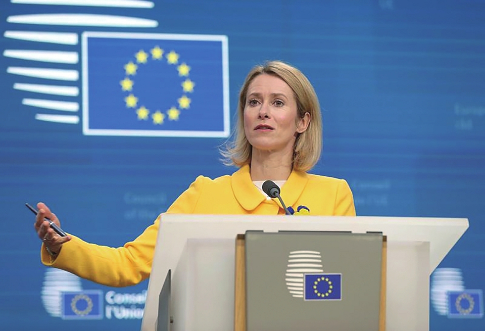2月24日,欧盟外交与安全政策高级代表卡拉斯在比利时布鲁塞尔出席新闻发布会。新华社记者 赵丁喆 摄