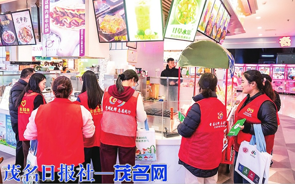 当晚,志愿者们深入商场内各商户门店进行生活垃圾分类普法宣传,向餐饮、零售等商户派发《茂名市生活垃圾分类投放指引》、生活垃圾分类宣传标语贴纸及海报等宣传物料,讲解《茂名市生活垃圾分类管理条例》的重点条款,并现场指导商户规范设置分类投放收集设施。一名女性商户经营者表示:“垃圾分类是生态文明建设的重要一环。作为女性,我们要发挥‘半边天’的作用,从自身做起,带动家庭成员积极践行垃圾分类。”