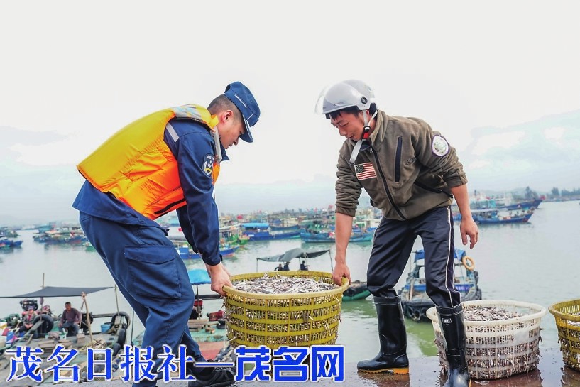 帮渔民搬运渔获物。通讯员 陈新元 谭苡铭 摄