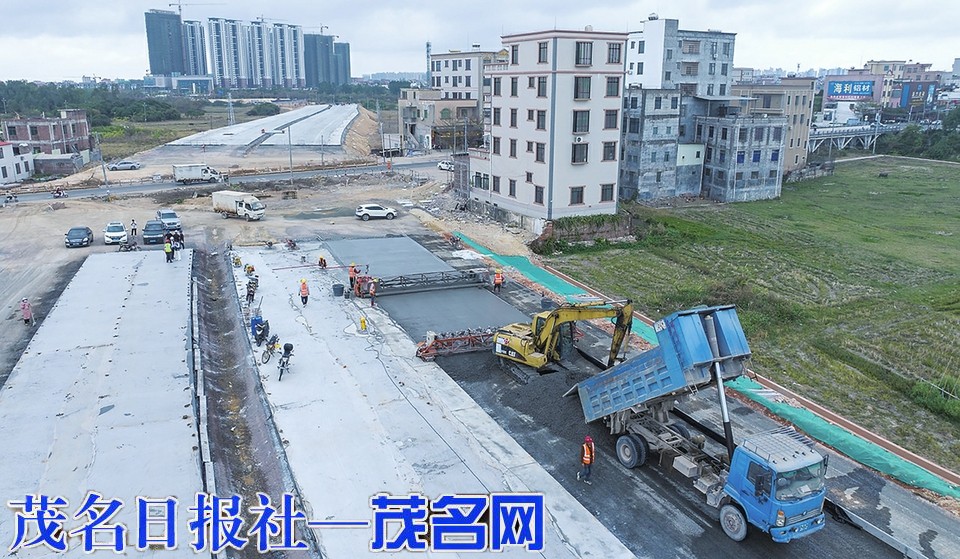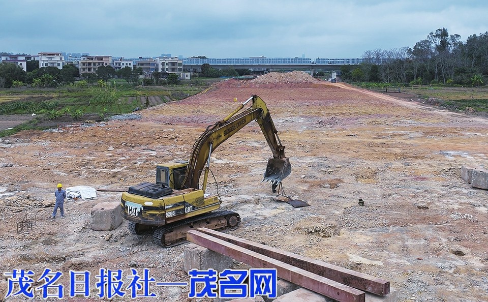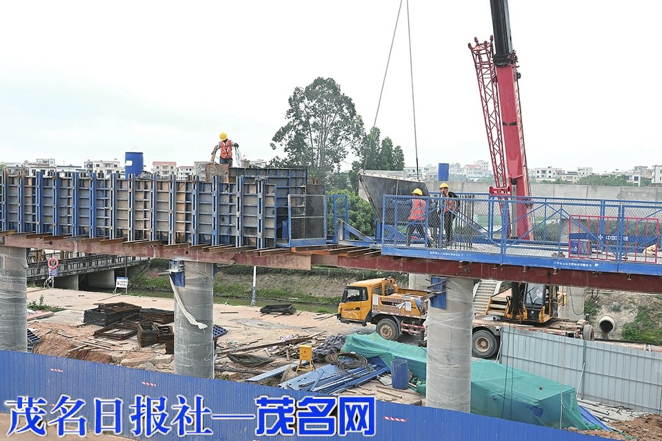 牛江路支渠大桥正在进行桥梁下部结构的施工。茂名日报社全媒体记者 甘杨松 摄