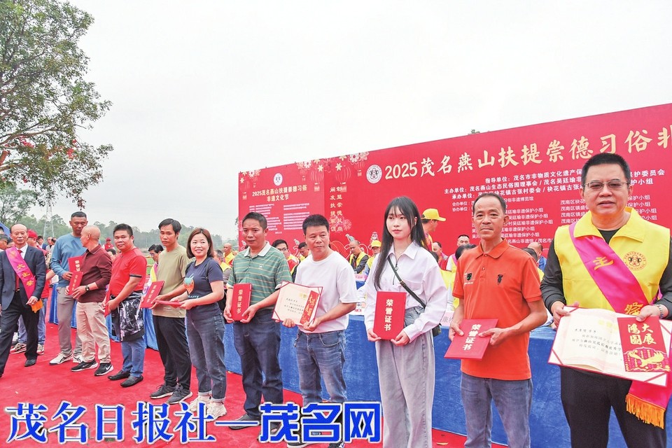 据介绍,“燕山扶提崇德习俗”于2023年8月被茂南区政府部门批准为第七批区级非物质文化遗产。据项目传承人吴康松介绍,近年来,燕山文物及非遗的保护与活化利用取得了较好的成果。活动始终秉持听党话、跟党走的理念,积极宣传党委、政府的中心工作。同时,传承发展吴廷瑜家训,将其与茂名的“好心精神”深度融合,凝聚正能量,赋予其新的时代意义,为茂名的文化繁荣与社会进步发挥自己的力量。