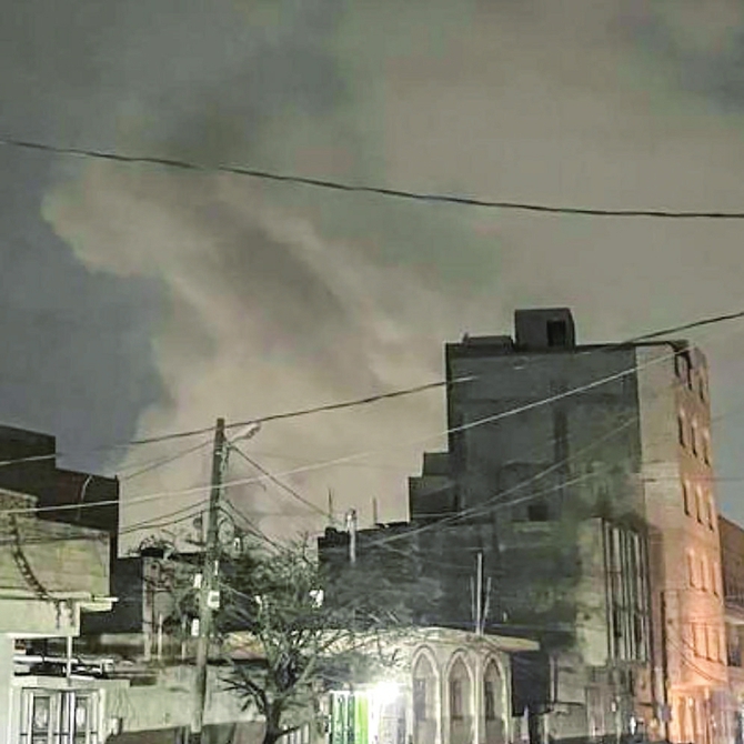 3月15日,也门首都萨那一处地点遭到空袭后升起浓烟(手机照片)。 新华社发(穆罕默德·穆罕默德摄)