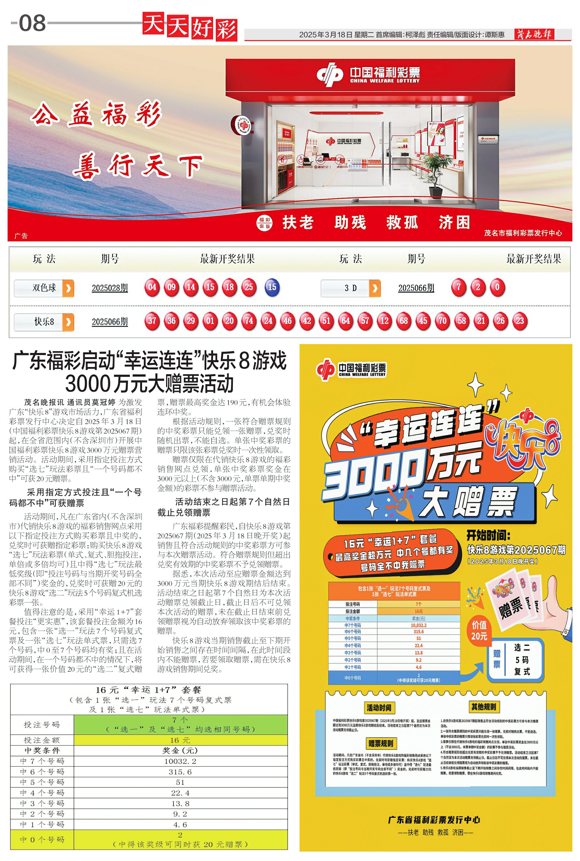 广东福彩启动“幸运连连”快乐8游戏3000万元大赠票活动