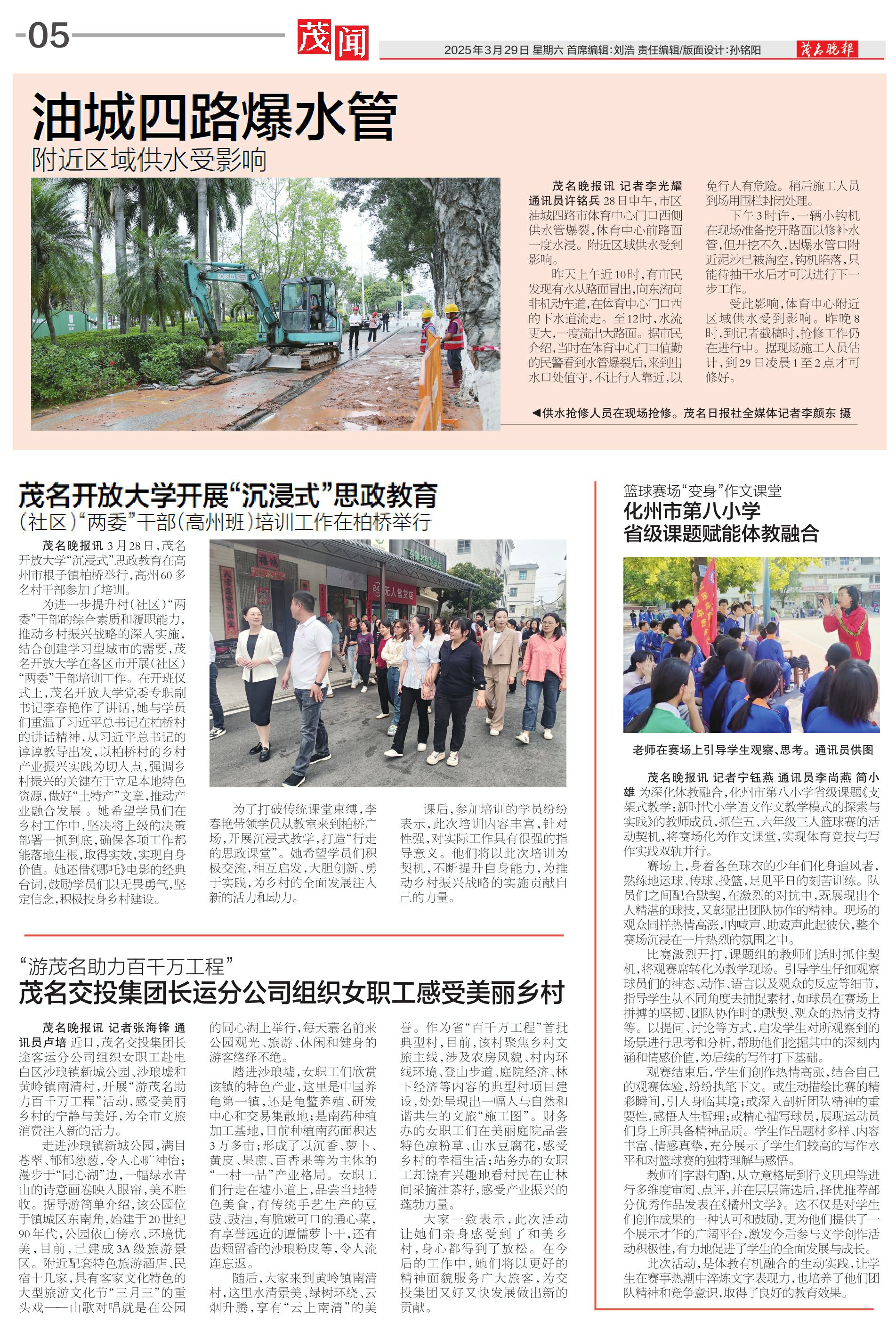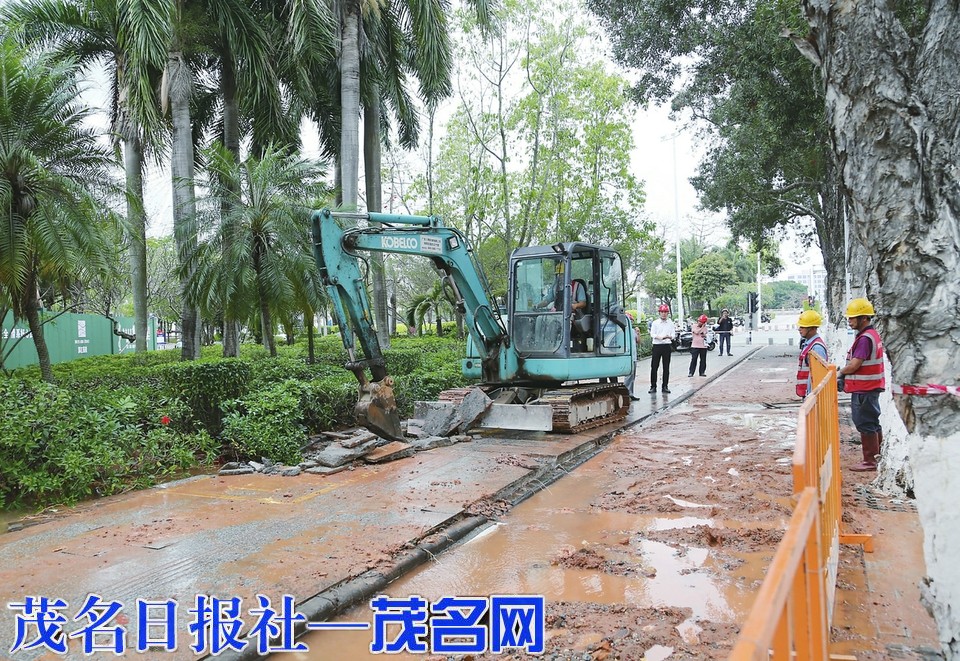 ◀供水抢修人员在现场抢修。茂名日报社全媒体记者李颜东摄