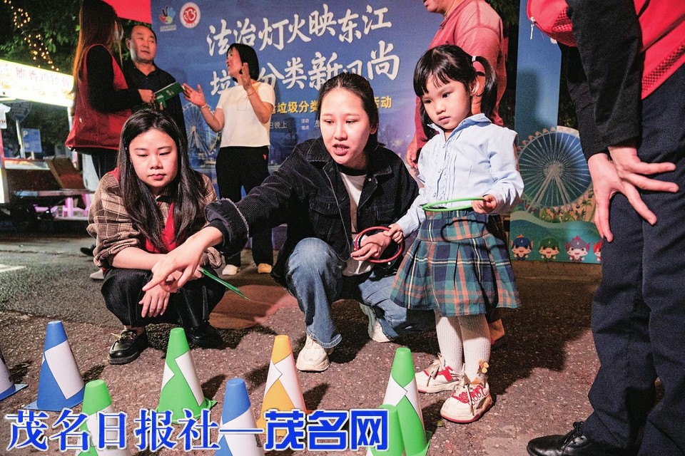 茂名晚报讯 记者  赖碧怡 通讯员  林文杰 黄文静  4月14日晚,茂名市生活垃圾分类普法宣传活动走进东江八点夜市,以“法治灯火映东江 垃圾分类新风尚”为主题,通过沉浸式普法宣传、趣味互动体验与夜间经济场景相融合,向市民群众、夜市商户等普及生活垃圾分类知识和相关法律法规,指导规范配置分类收集容器,引导其规范做好生活垃圾分类。