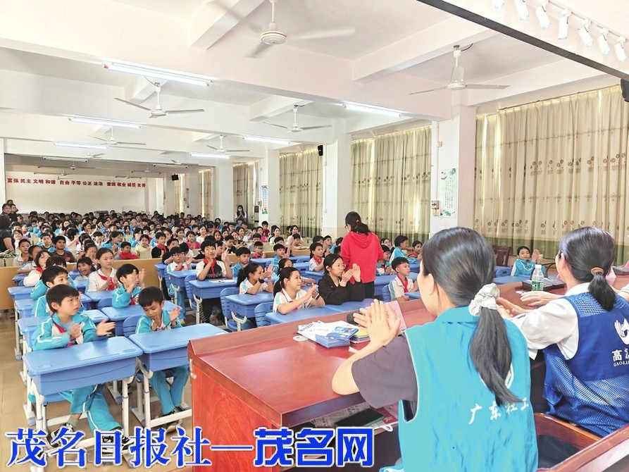 茂名晚报讯 为进一步深化青少年毒品预防教育宣传工作,提高学生拒毒意识和防毒能力,4月15日,电白区旦场镇平安法治办、禁毒办高凉禁毒社工、未保办双百社工等多部门联合到旦场中心小学开展“以‘安全’之名,守护‘无毒’青春”禁毒宣传进校园活动。