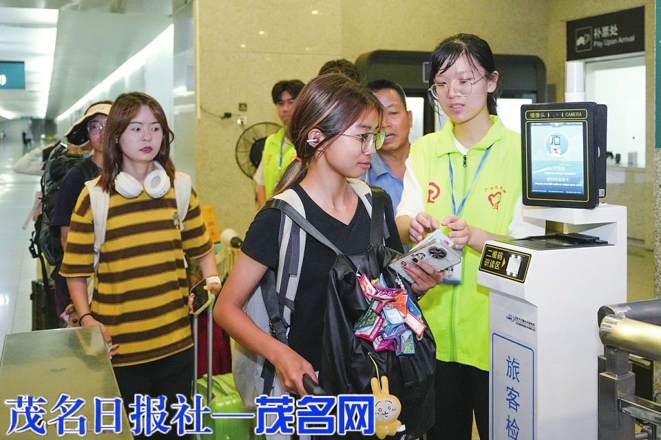 运动员到达茂名站出站口。茂名日报社全媒体记者 康乾 摄