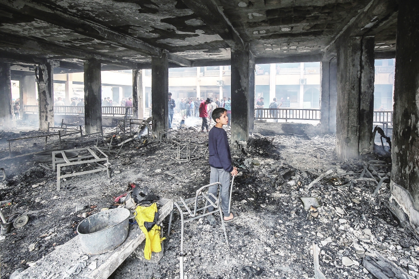 4月23日,在加沙地带北部加沙城,人们查看以军袭击后的学校。新华社发(里泽克·阿卜杜勒贾瓦德 摄)