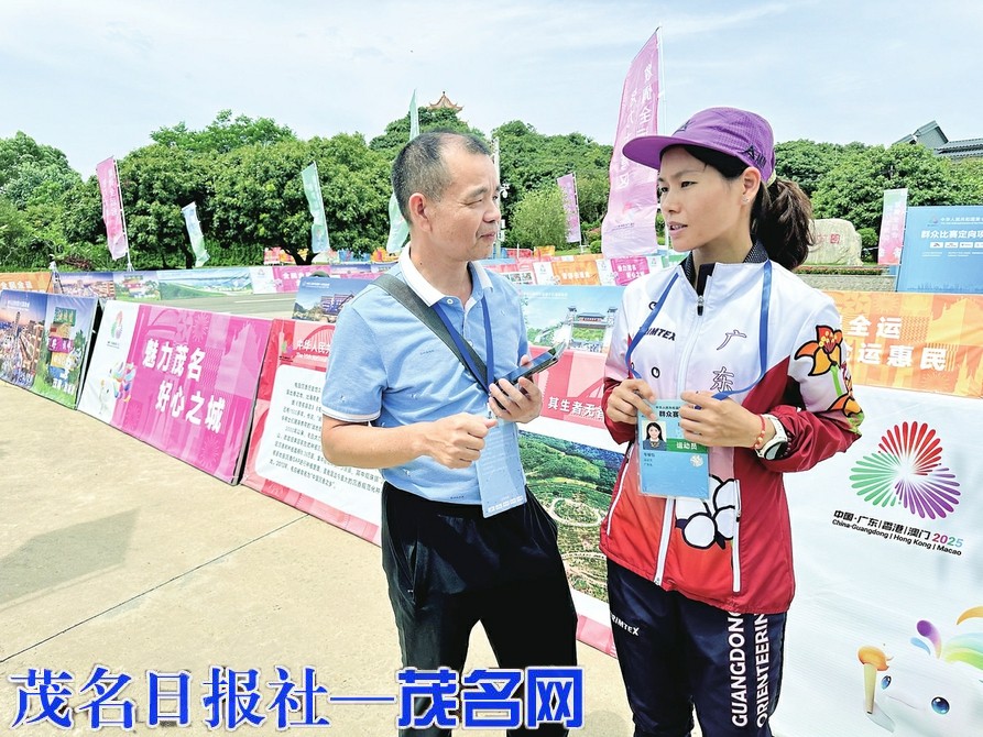 11日上午,韦愫怡与队友一起,在定向女子团体赛个人长距离赛中为队友陈丽珍鼓劲加油,当陈丽珍完成比赛后,韦愫怡接受了茂名晚报记者的采访。