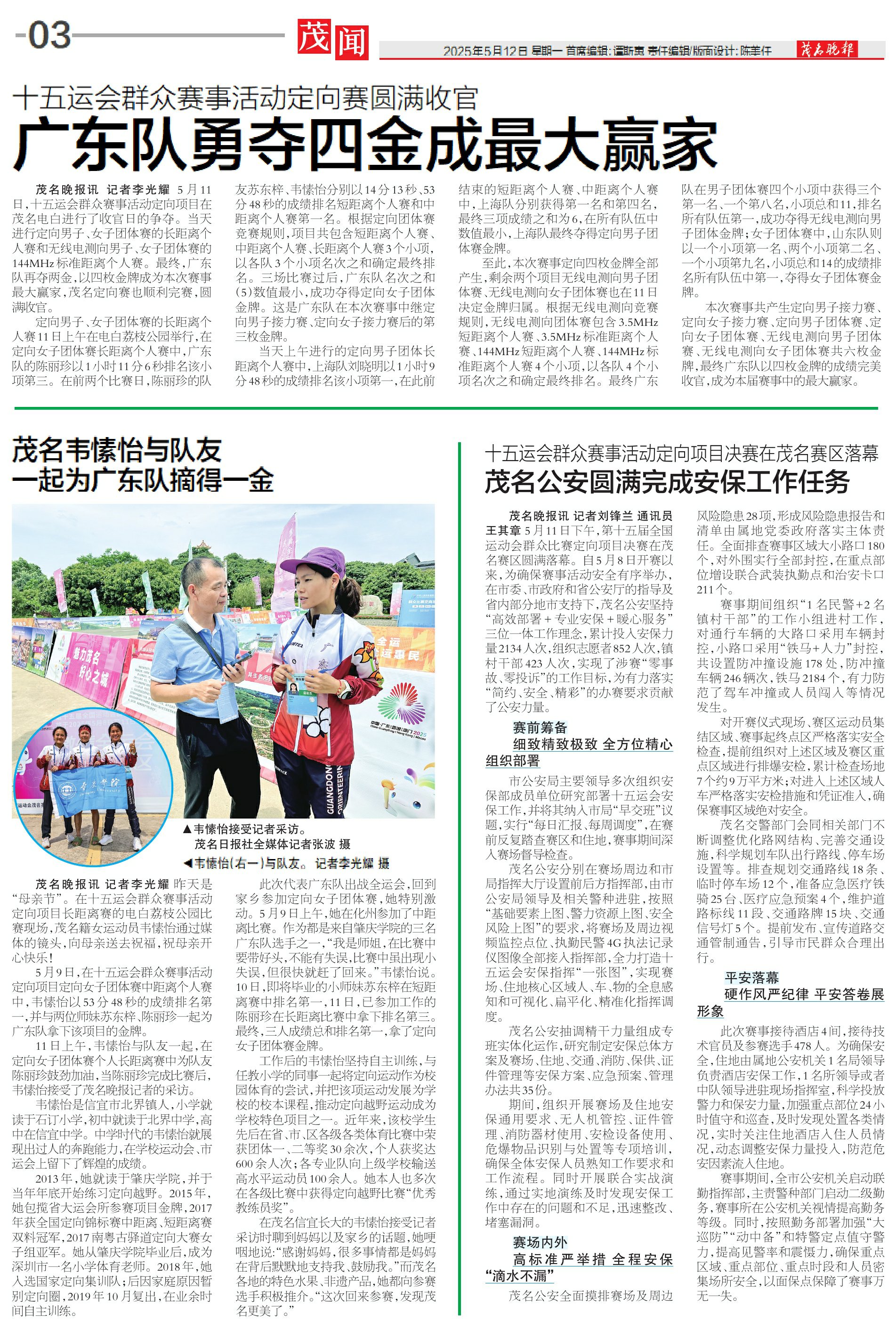 茂名韦愫怡与队友一起为广东队摘得一金