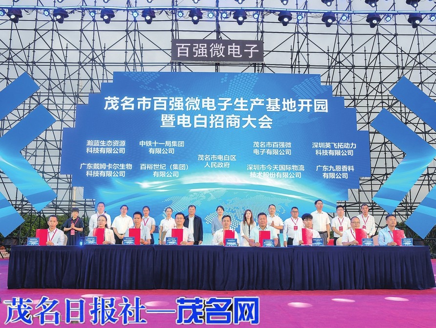 此外,推介会现场,电白区政府还与包括百强微电子在内的8家企业分别签署了《企业服务协议》《战略框架协议》和《投资协议》,涉及产业涵盖生物科技、电子信息、海洋等领域。百强微电子项目也将作为电白电子信息产业园扩容提质的“先锋队”,与欣旺达电白基地、广东长盈科技等优质企业协同,演绎新质生产力的“电白故事”。