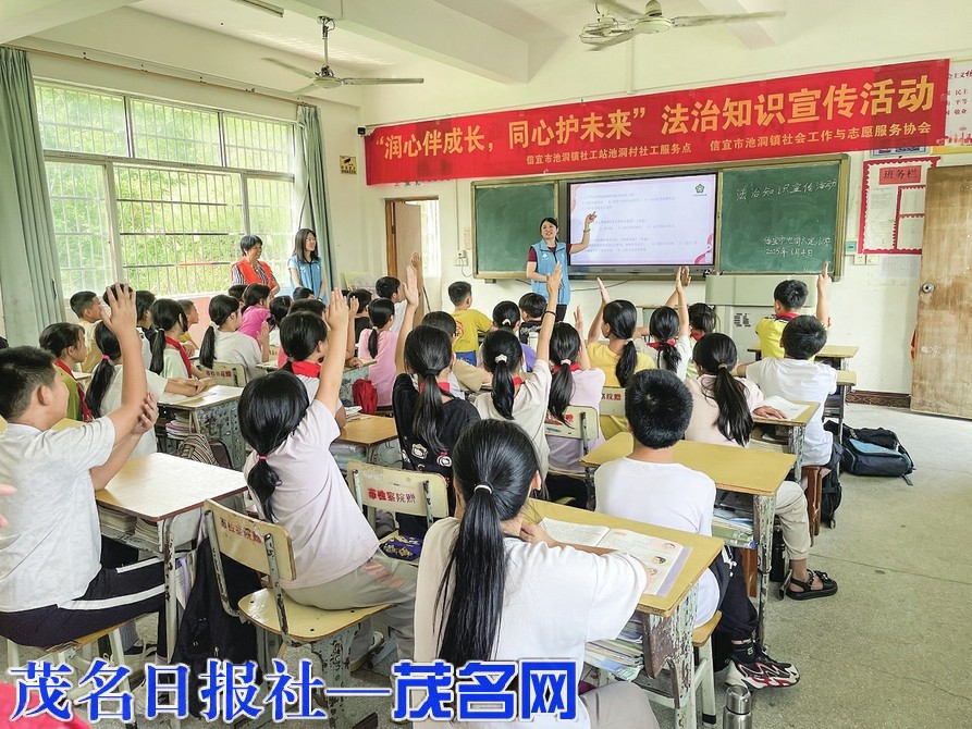 茂名晚报讯通讯员颜甫芸颜裕才记者孙铭阳 为切实增强未成年人的法治观念与自我保护意识,6月4日,信宜市池洞镇池洞村社工点携手信宜市未成年人保护中心、驻村律师在六定小学开展“润心伴成长,同心护未来”法治知识宣传活动。本次活动给孩子们带来了一堂兼具教育性与趣味性的法治教育课,为他们的健康成长保驾护航。