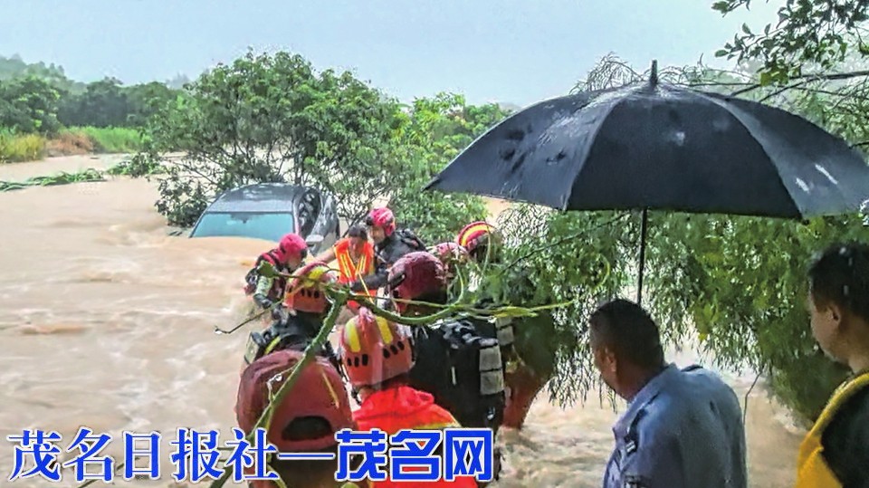 小车被冲入河中1人被困 消防员拉绳强渡救人