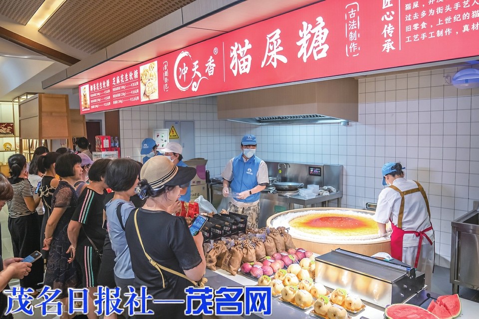 非遗集市和高凉名小吃集聚区则是体验市井风味的好去处。猫屎糖摊位前总是排着长队,“(旅客)多的时候一天要做2000斤!”师傅说。阿朱家籺、官桥煎堆、化州糖水等非遗小吃现做现卖,让游客从咸香到清甜一站式尝遍茂名风味。