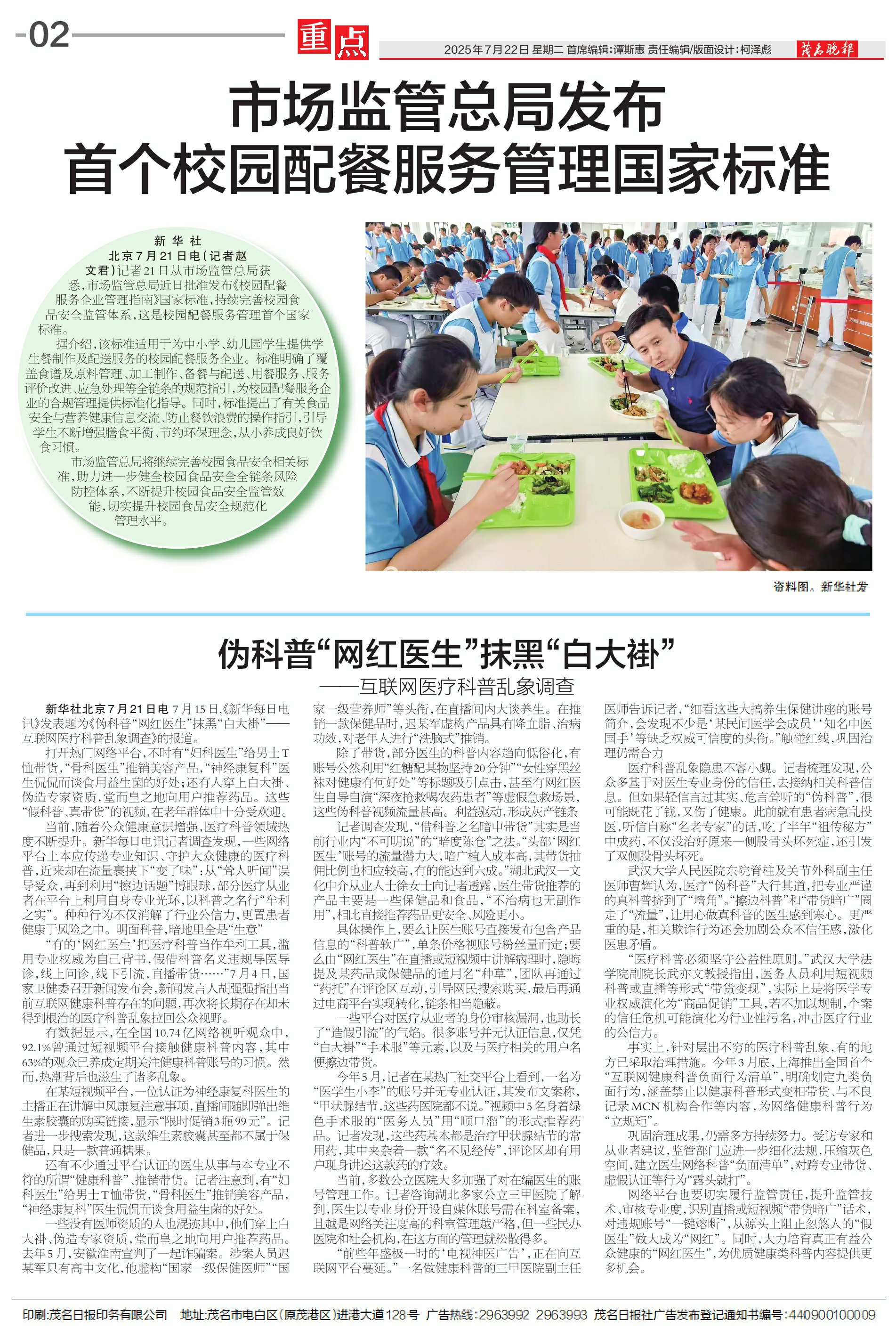 市场监管总局发布首个校园配餐服务管理国家标准