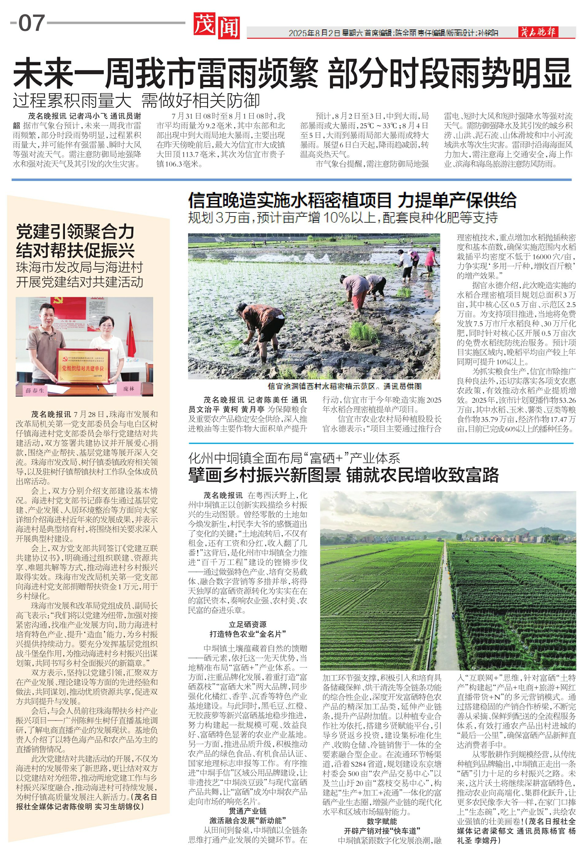 信宜晚造实施水稻密植项目 力提单产保供给