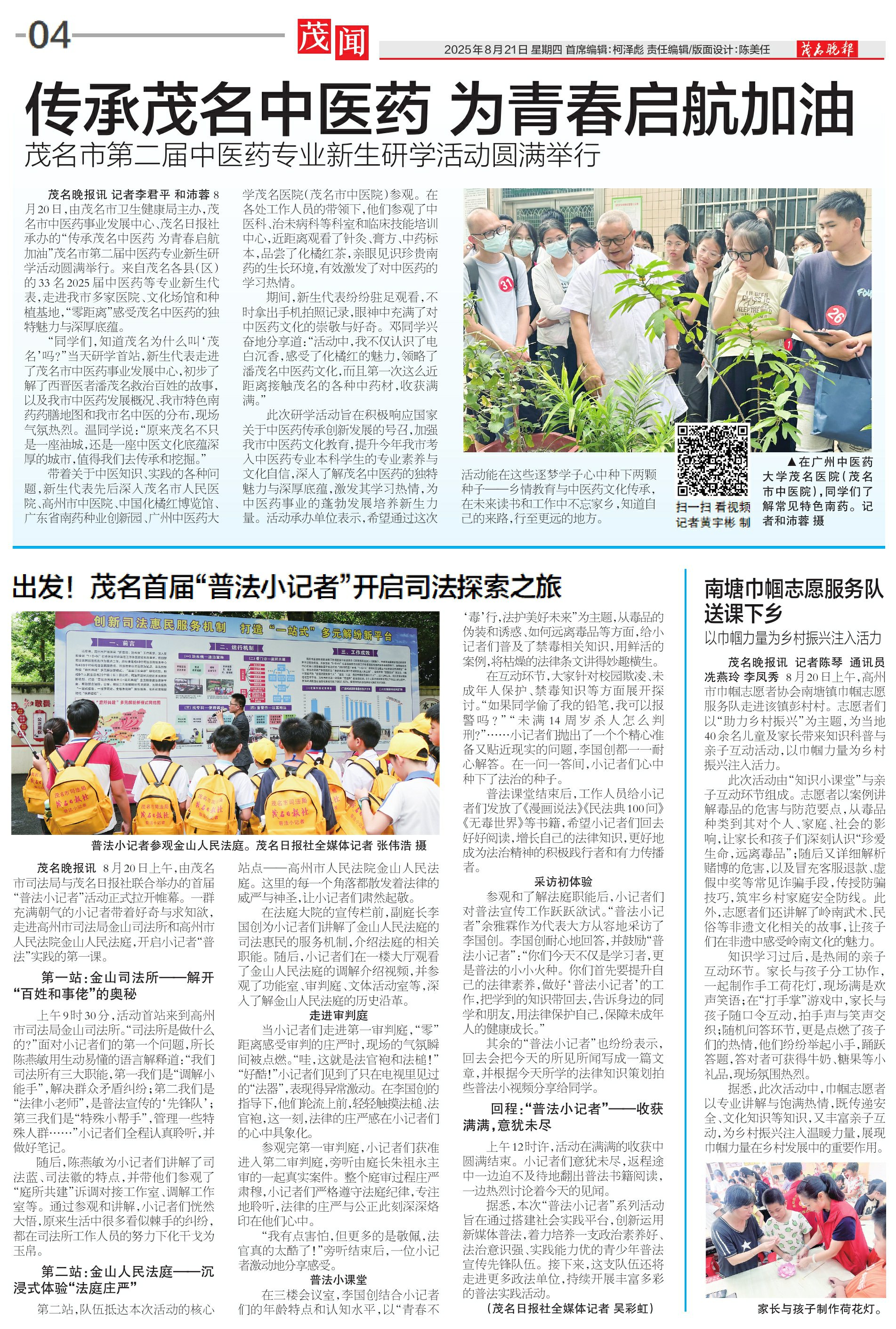出发!茂名首届“普法小记者”开启司法探索之旅
