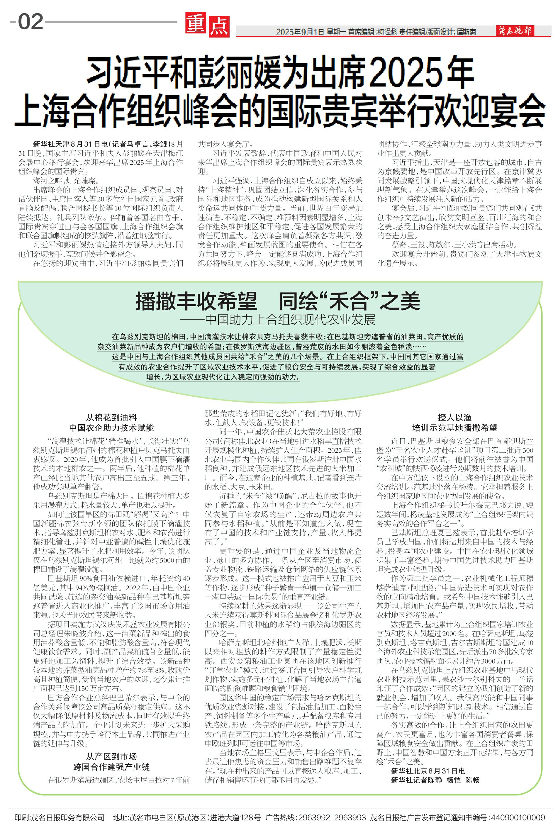 习近平和彭丽媛为出席2025年上海合作组织峰会的国际贵宾举行欢迎宴会