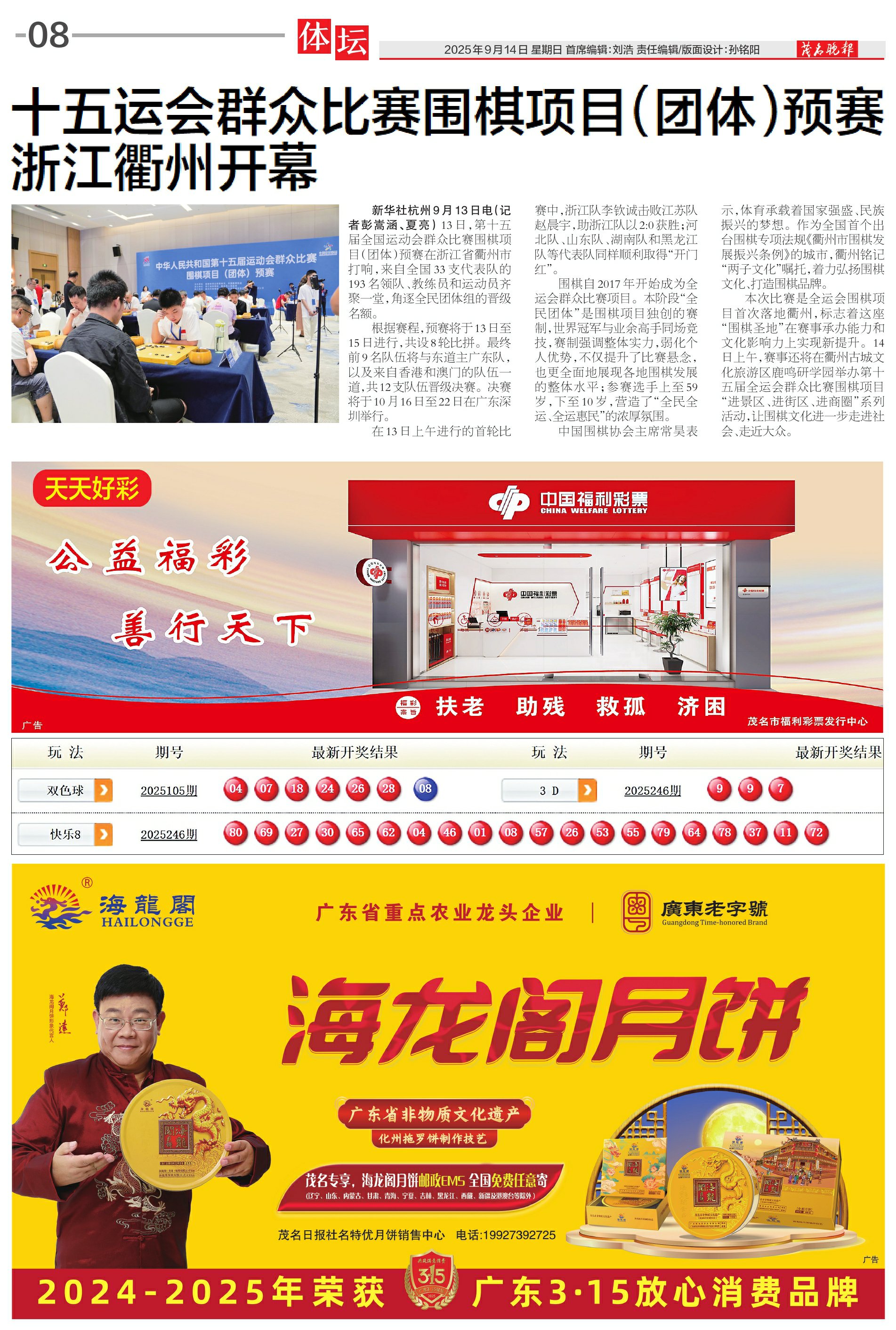 十五运会群众比赛围棋项目(团体)预赛浙江衢州开幕