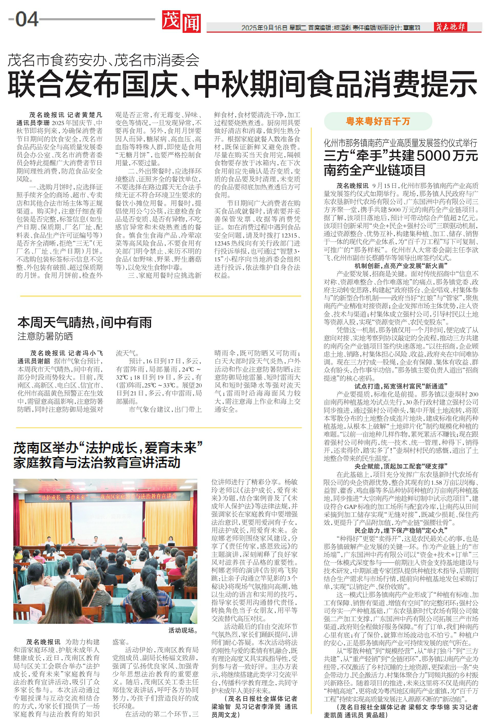 茂名市食药安办、茂名市消委会联合发布国庆、中秋期间食品消费提示