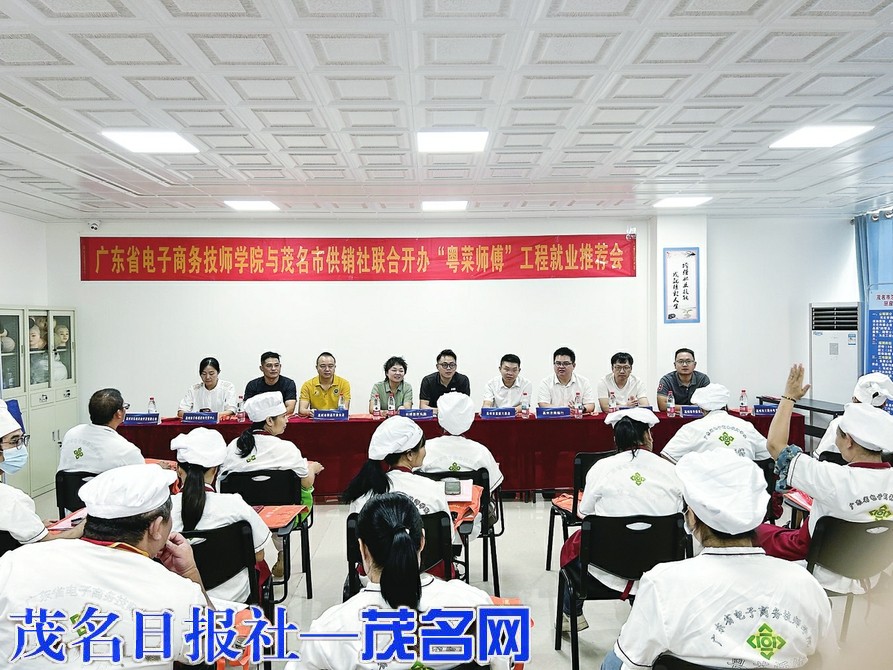 茂名晚报讯 记者 赖碧怡 9月26日上午,广东省电子商务技师学院与茂名市供销社联合主办的“粤菜师傅”工程就业推荐会在高州市诚德职业培训学校举行。活动现场,多家餐饮企业与第八期培训班50名优秀学员展开对接,超过80%的学员现场达成就业意向,为高凉菜品牌打造和乡村振兴注入新动能。
