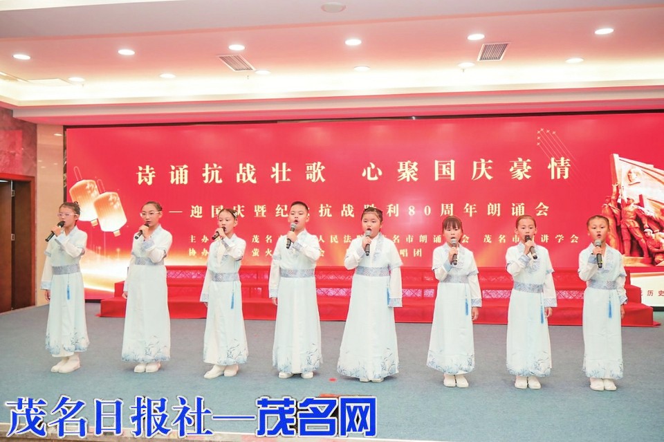 茂名晚报讯 用声音传递历史的回响,用激情抒发爱国的豪情。9月27日晚,由茂名市中级人民法院、茂名市朗诵协会、茂名市演讲学会、萤火虫读书会联合主办,秋之声合唱团协办的“诗诵抗战壮歌,心聚国庆豪情”——迎国庆暨纪念抗战胜利80周年朗诵会,以朗诵、歌唱、舞蹈等形式,纪念抗战胜利80周年,抒发对伟大祖国的深切热爱与美好祝福。活动现场气氛热烈,座无虚席。