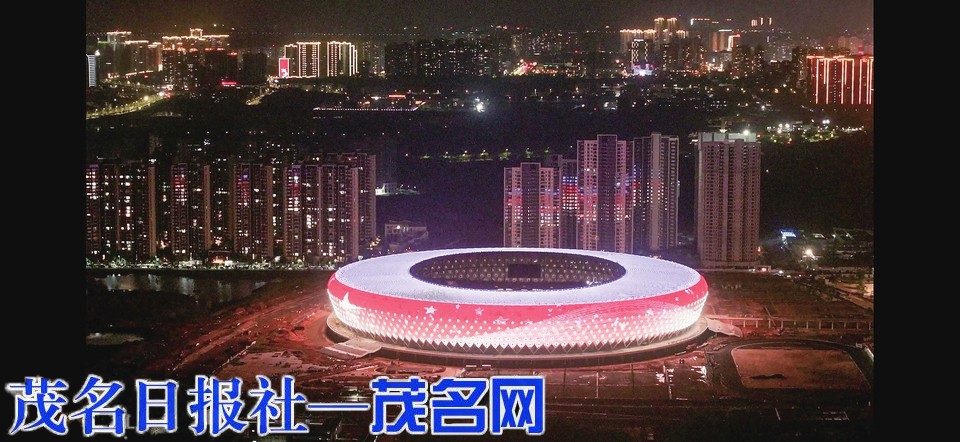 首次全规模亮灯的茂名奥体中心体育场璀璨夺目。 茂名日报社全媒体记者 刘邦博 摄