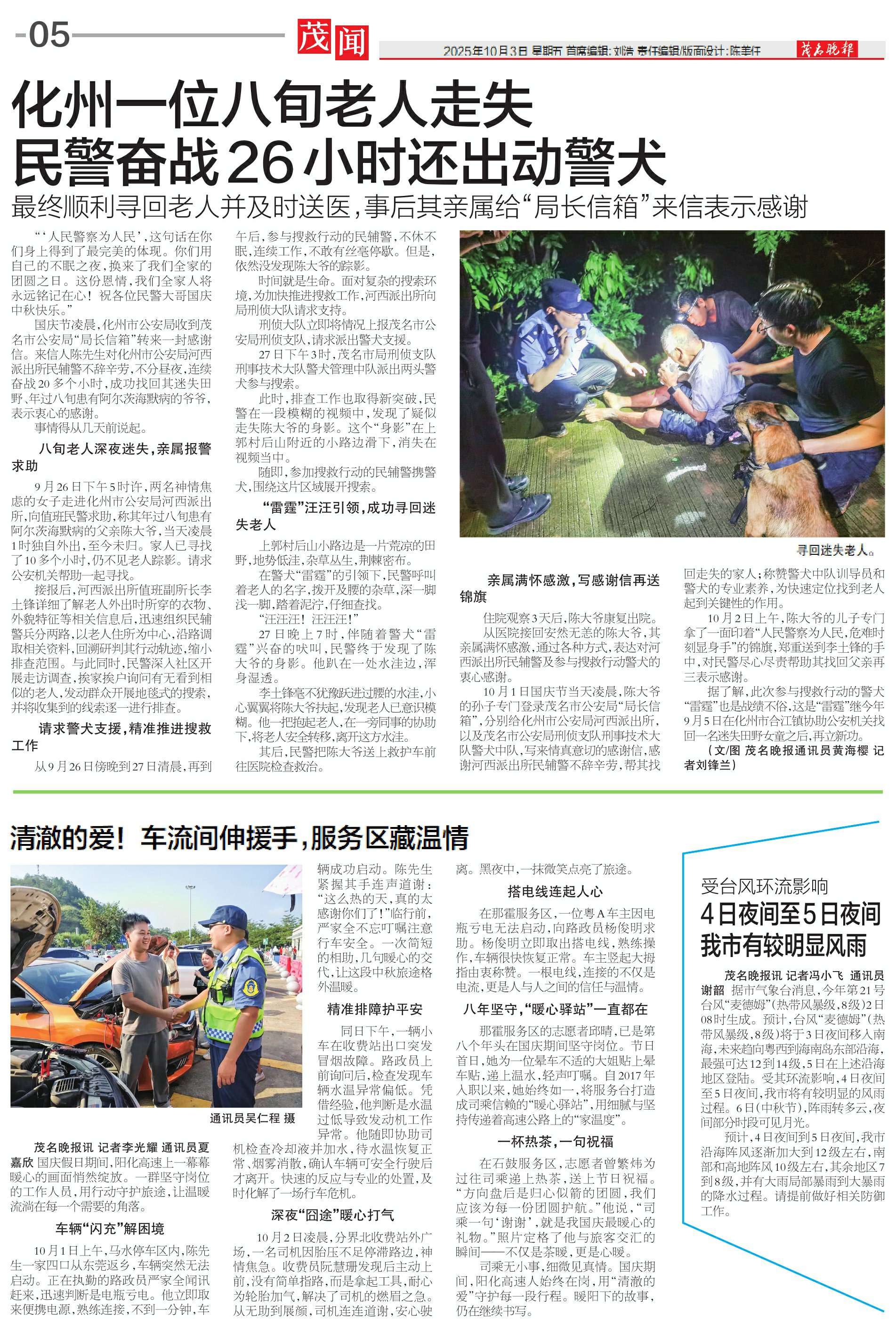 化州一位八旬老人走失民警奋战26小时还出动警犬