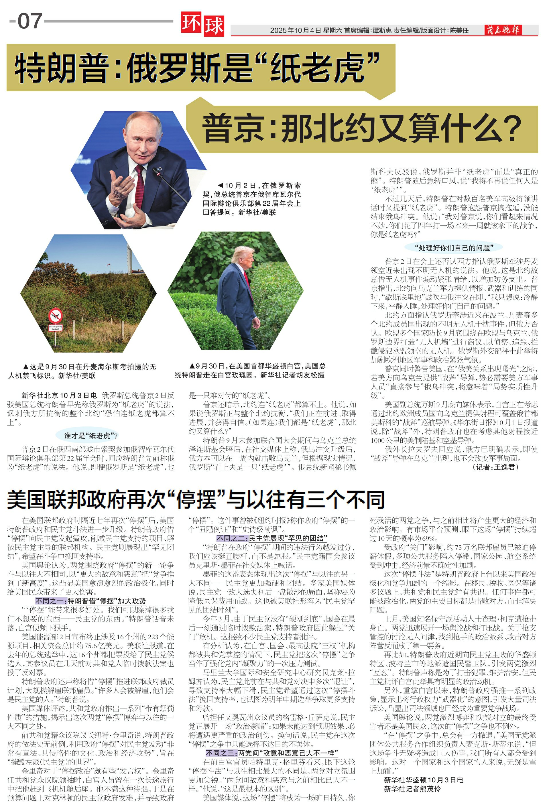 特朗普:俄罗斯是“纸老虎”