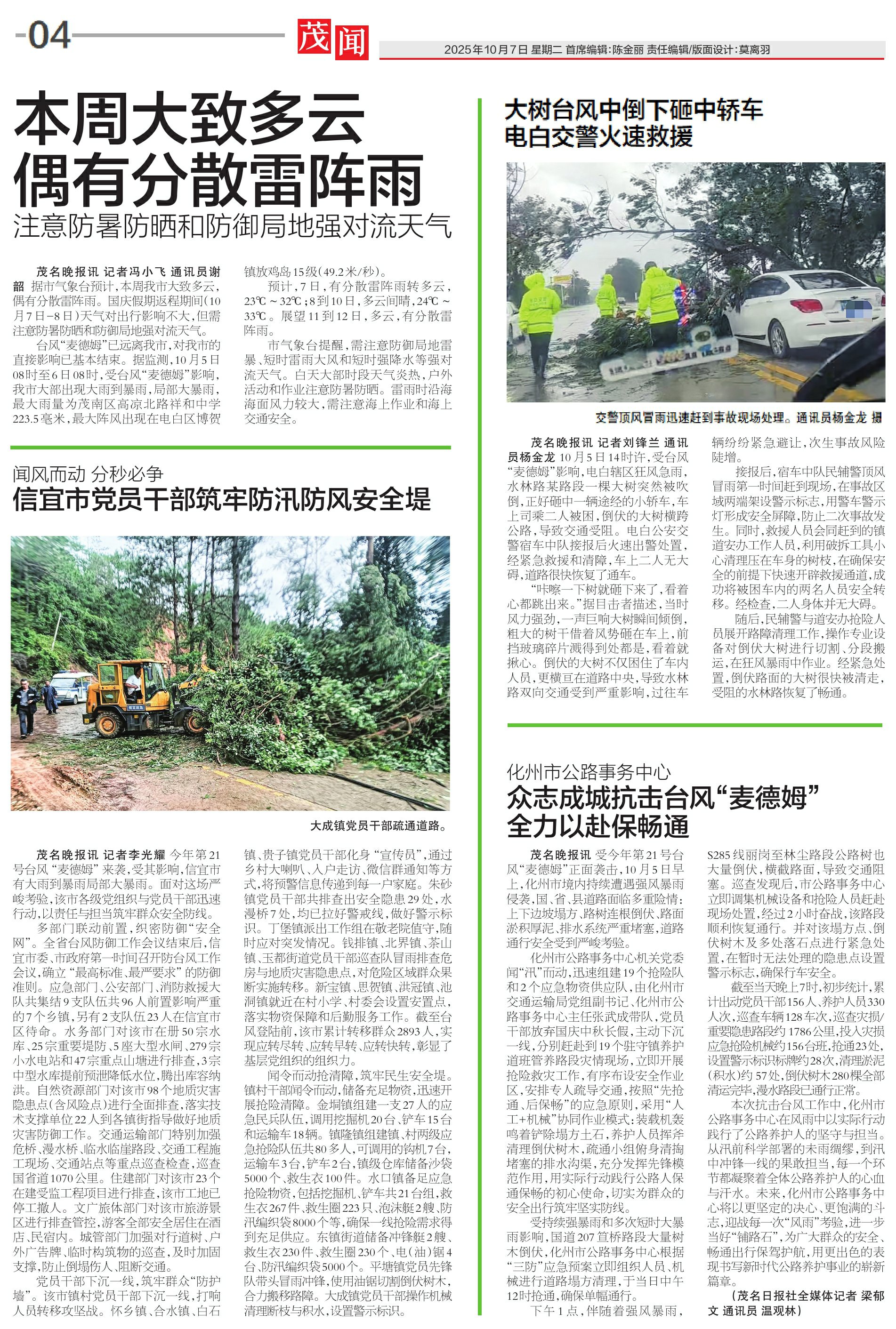 众志成城抗击台风“麦德姆” 全力以赴保畅通