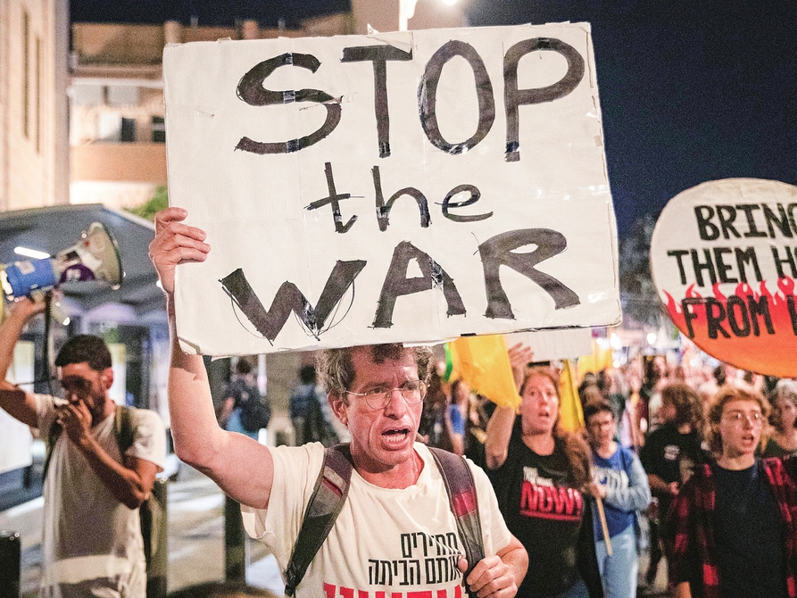 10月4日,人们在耶路撒冷参加游行集会,要求政府迅速在加沙地带实现停火。新华社记者 陈君清 摄