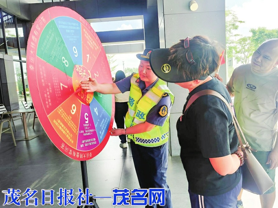 ▲茂湛、包茂高速路政员在服务区开展交通安全知识趣味问答。