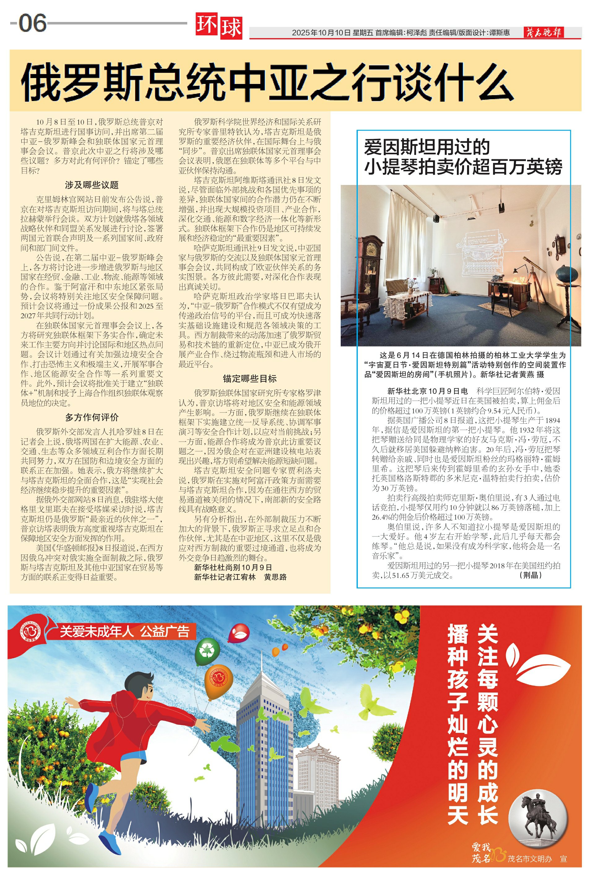 新华社北京10月9日电 科学巨匠阿尔伯特·爱因斯坦用过的一把小提琴近日在英国被拍卖,算上佣金后的价格超过100万英镑(1英镑约合9.54元人民币)。