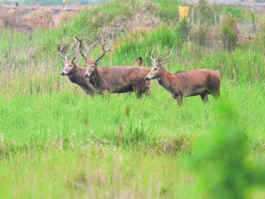 6月7日在江苏盐城东台条子泥湿地拍摄的麋鹿。(张龙 摄)