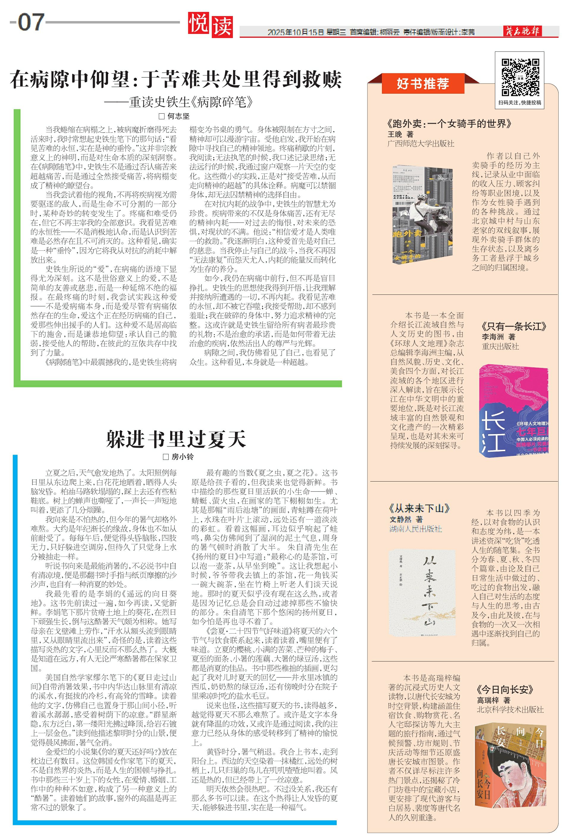 《病隙随笔》中最震撼我的,是史铁生将病榻变为书桌的勇气。身体被限制在方寸之间,精神却可以漫游宇宙。受他启发,我开始在病隙中寻找自己的精神领地。疼痛稍歇的片刻,我阅读;无法执笔的时候,我口述记录思绪;无法远行的时候,我通过窗户观察一片天空的变化。这些微小的实践,正是对“接受苦难,从而走向精神的超越”的具体诠释。病魔可以禁锢身体,却无法囚禁精神的选择自由。