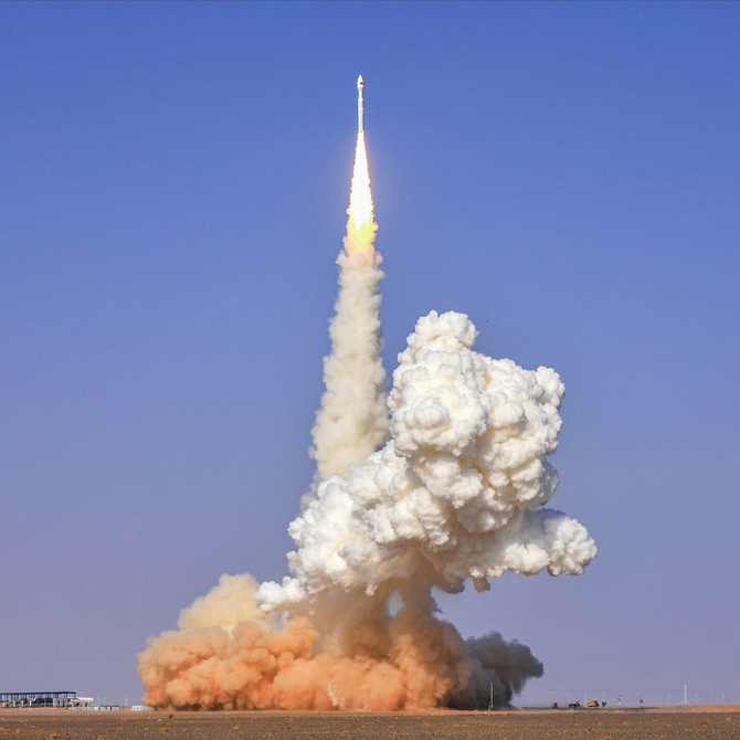 10月19日11时33分,力箭一号遥八运载火箭在东风商业航天创新试验区发射升空,将搭载的巴基斯坦遥感卫星02星、中科卫星03星和04星共3颗卫星顺利送入预定轨道,飞行试验任务获得圆满成功。新华社发(李昀锡 摄)