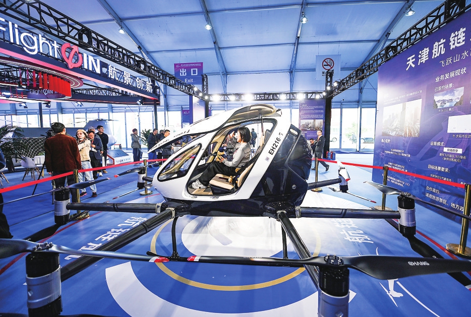新华社天津10月19日电(记者 杨文)会场上空,伴随着阵阵轰鸣,直升机表演的“空中芭蕾”引起阵阵欢呼;展厅内部,造型酷炫的大型eVTOL(电动垂直起降飞行器)和观光用的“敞篷”小型直升机吸引观众驻足拍照……