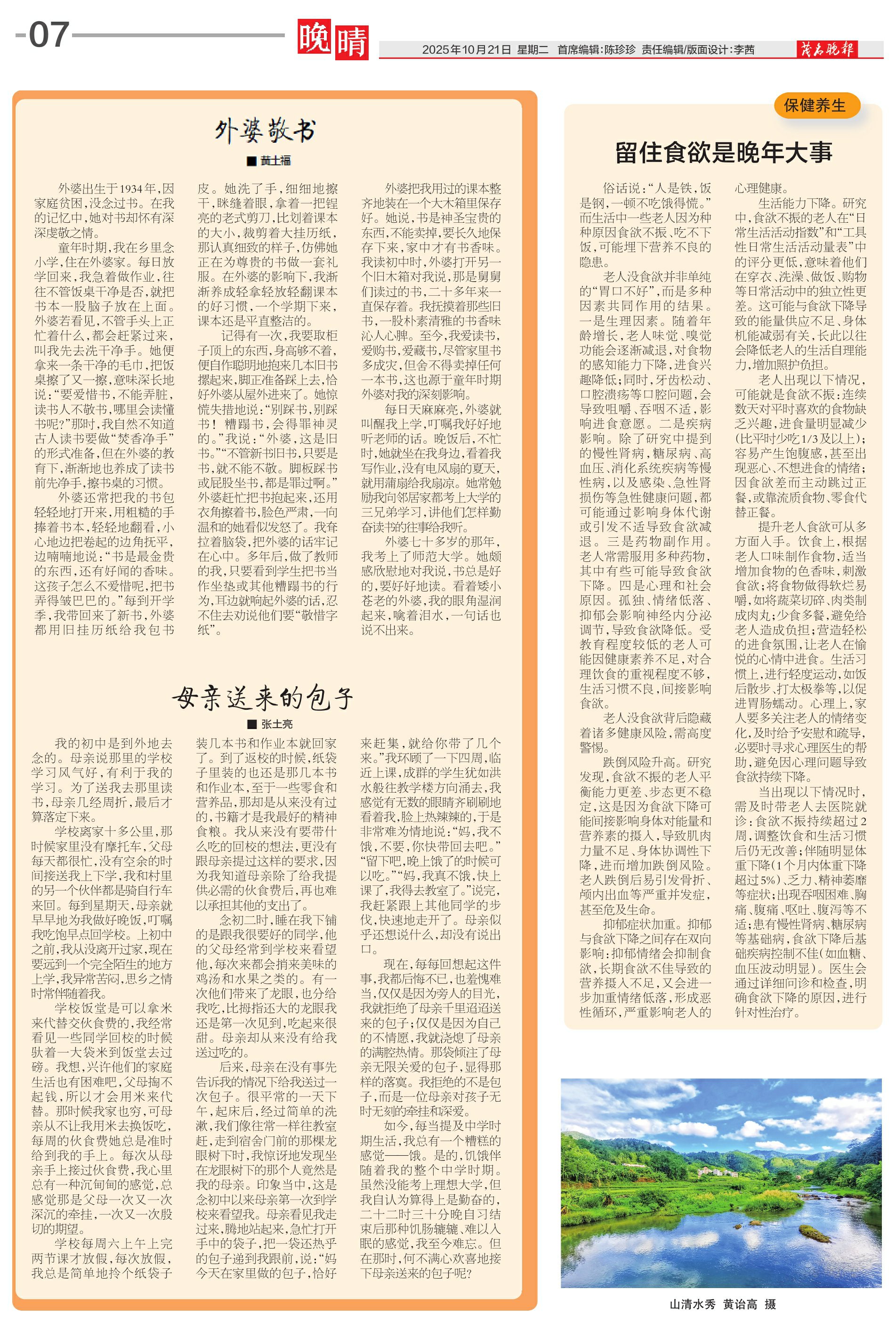 每日天麻麻亮,外婆就叫醒我上学,叮嘱我好好地听老师的话。晚饭后,不忙时,她就坐在我身边,看着我写作业,没有电风扇的夏天,就用蒲扇给我扇凉。她常勉励我向邻居家都考上大学的三兄弟学习,讲他们怎样勤奋读书的往事给我听。