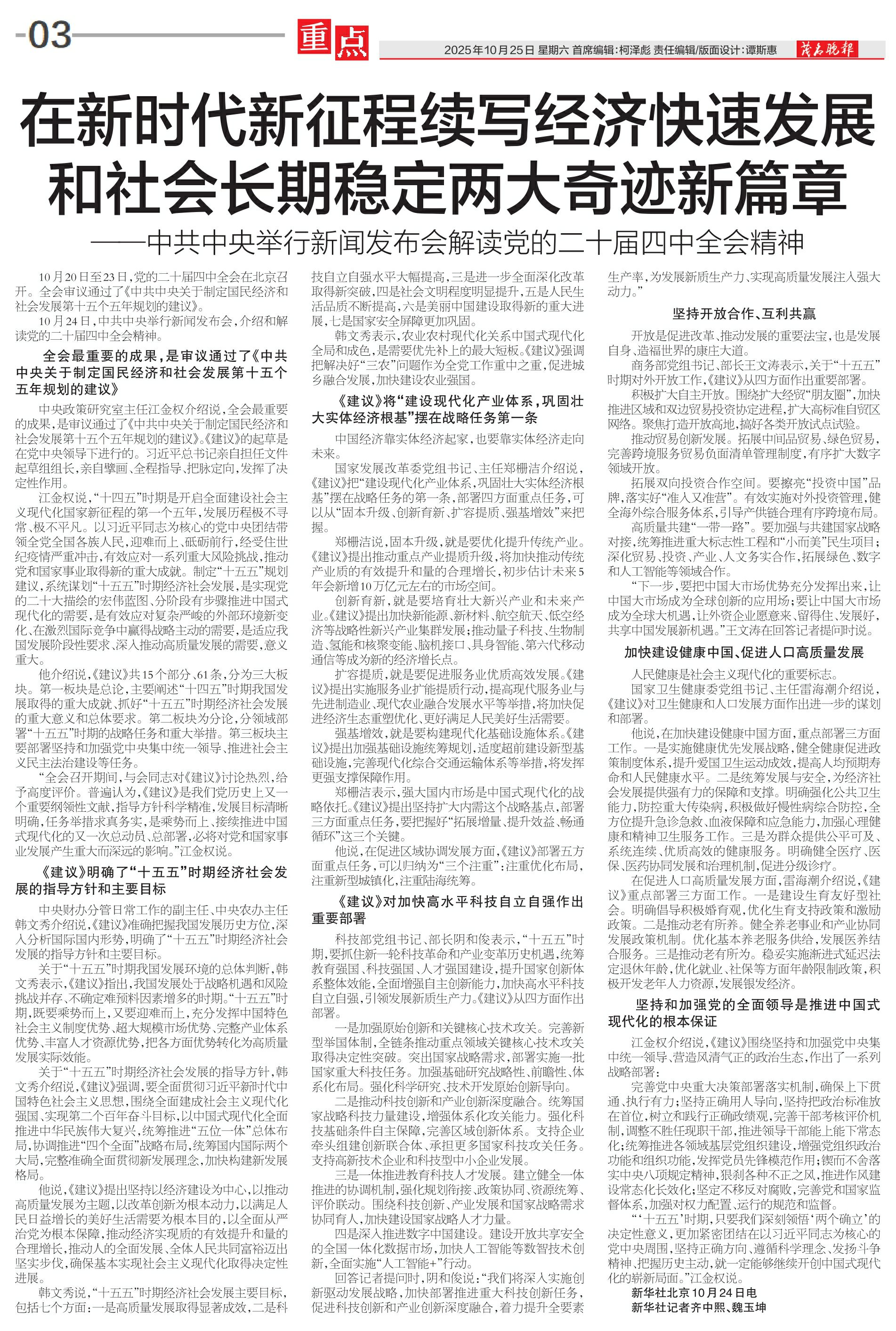 在新时代新征程续写经济快速发展和社会长期稳定两大奇迹新篇章